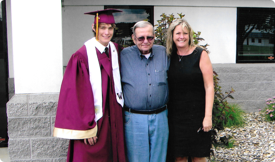 Jacob Bailey celebrates his high school graduation with his grandpa Bill and mom, Julie.